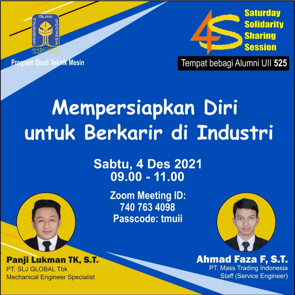 Persiapkan diri untuk berkarir di dunia industri, pada acara Saturday Solidarity Sharing Session 11 Desember 2021 nanti kita akan menghadirkan pembicara dari PT. Indonesi Epson Industry.